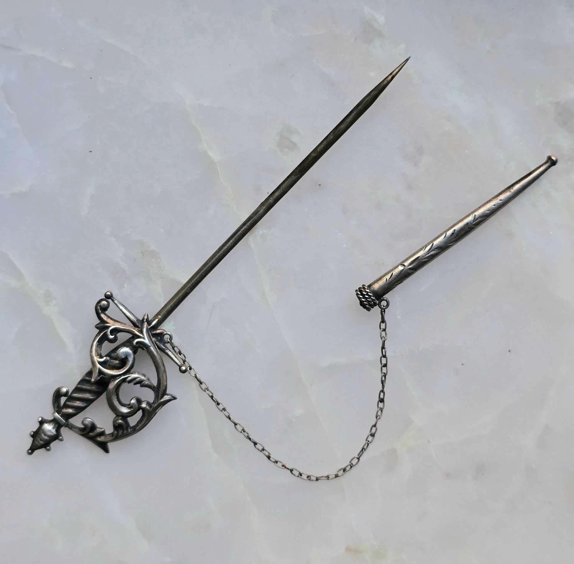 Antique Edwardian Sterling Silver Sword Jabot Pin