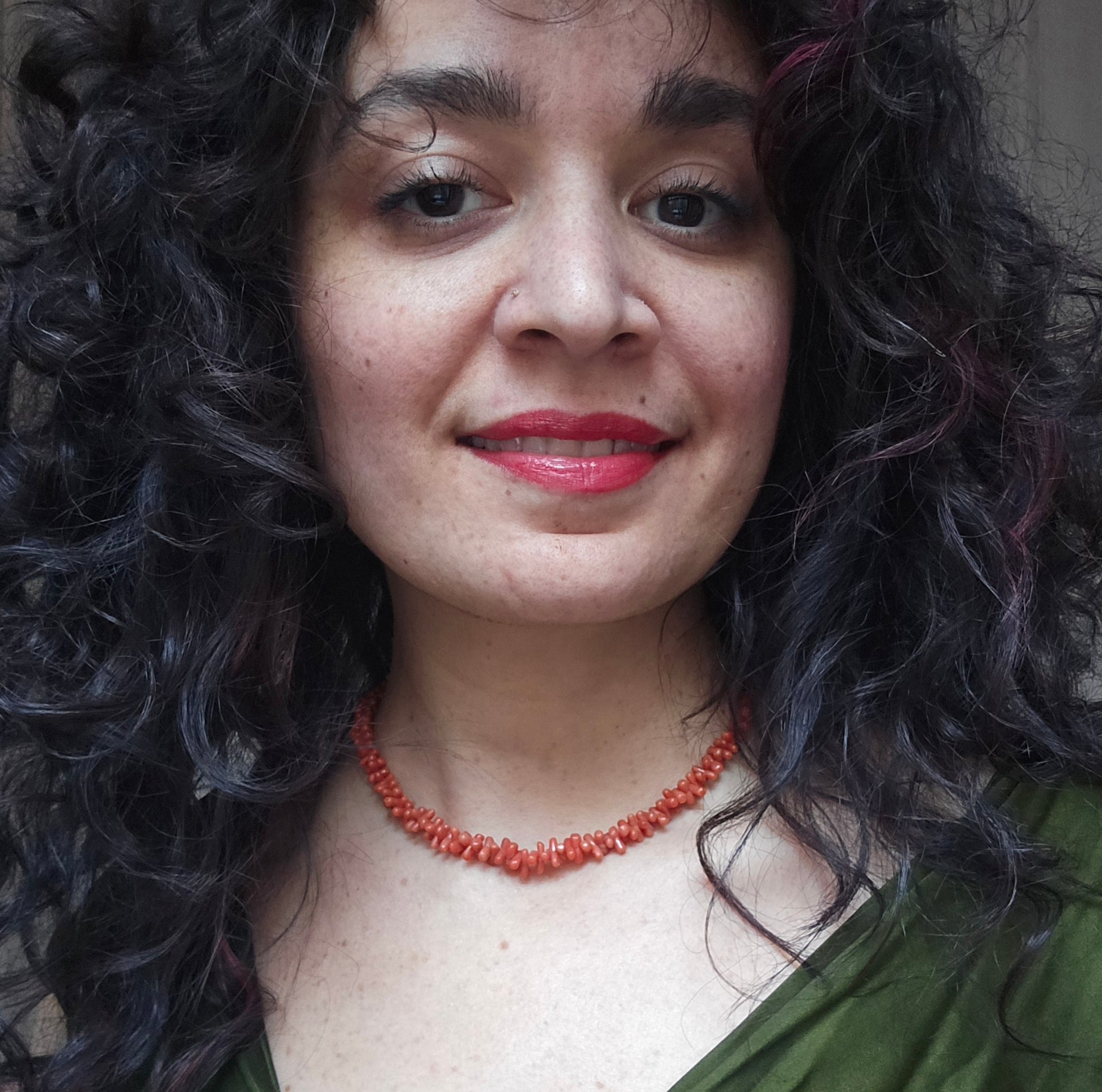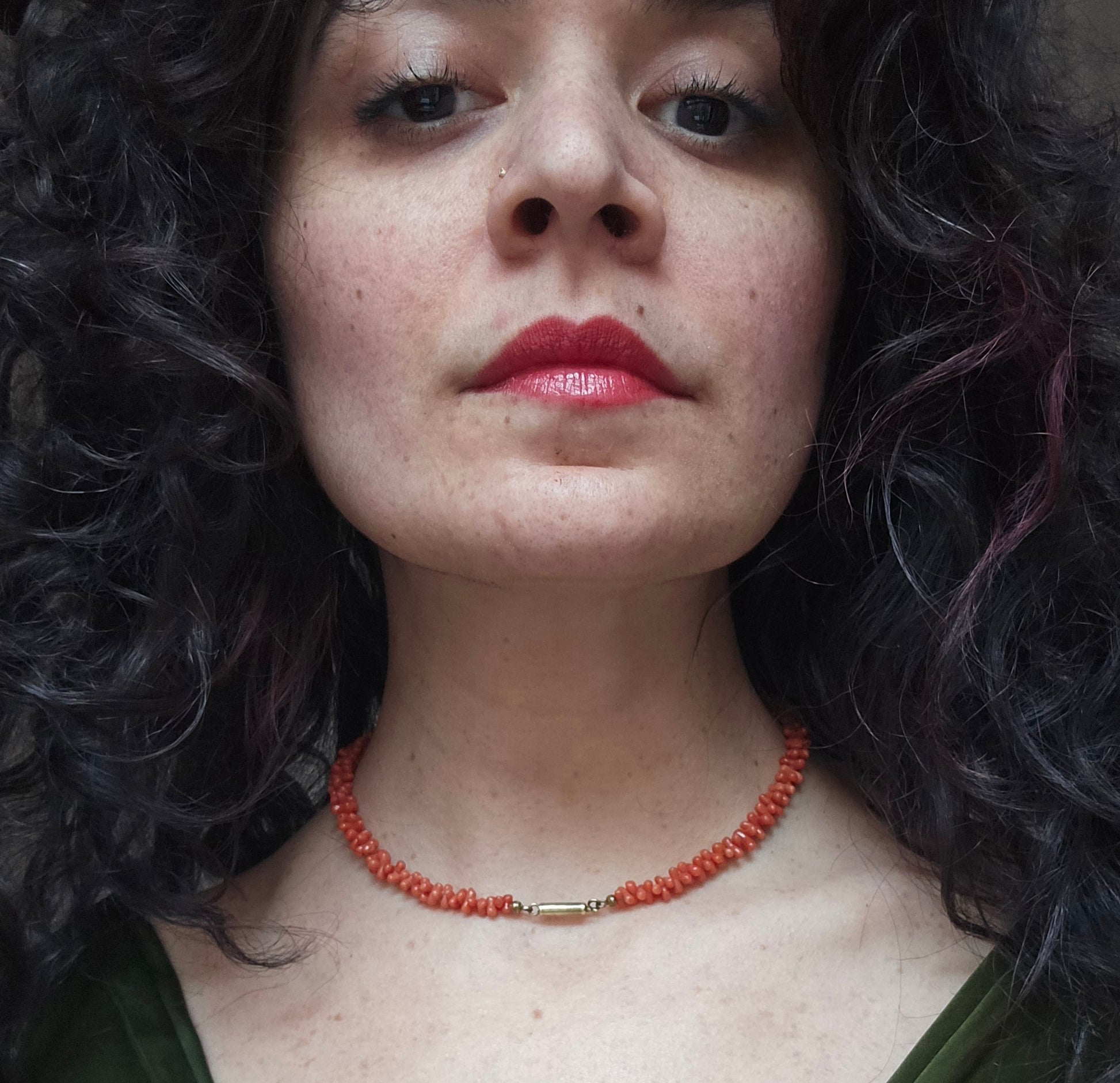 Another classic example of a Victorian era coral necklace, this time in a hand-carved "dogbone" shape in graduated sizes. This style of bead, also known as hourglass shape, was incredibly popular from the mid 1800s through the early 1900s, and experienced a resurgence in popularity in Asian coral production during the 1960s and 1970s. Antique examples are easy to spot, because of their irregular, asymmetrical shapes and obvious hand carving. This particular necklace features a style of dogbone bead that retains more of the original coral branch's natural shape.