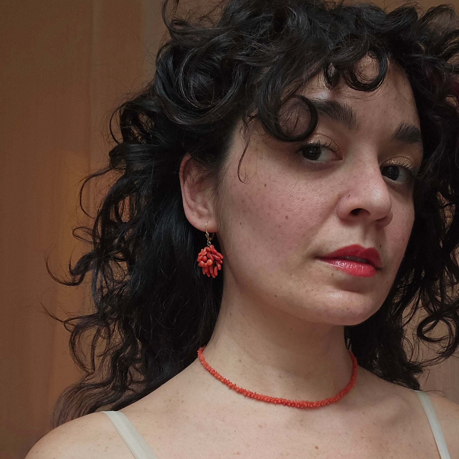 Antique Victorian Mediterranean Coral Cluster Earrings