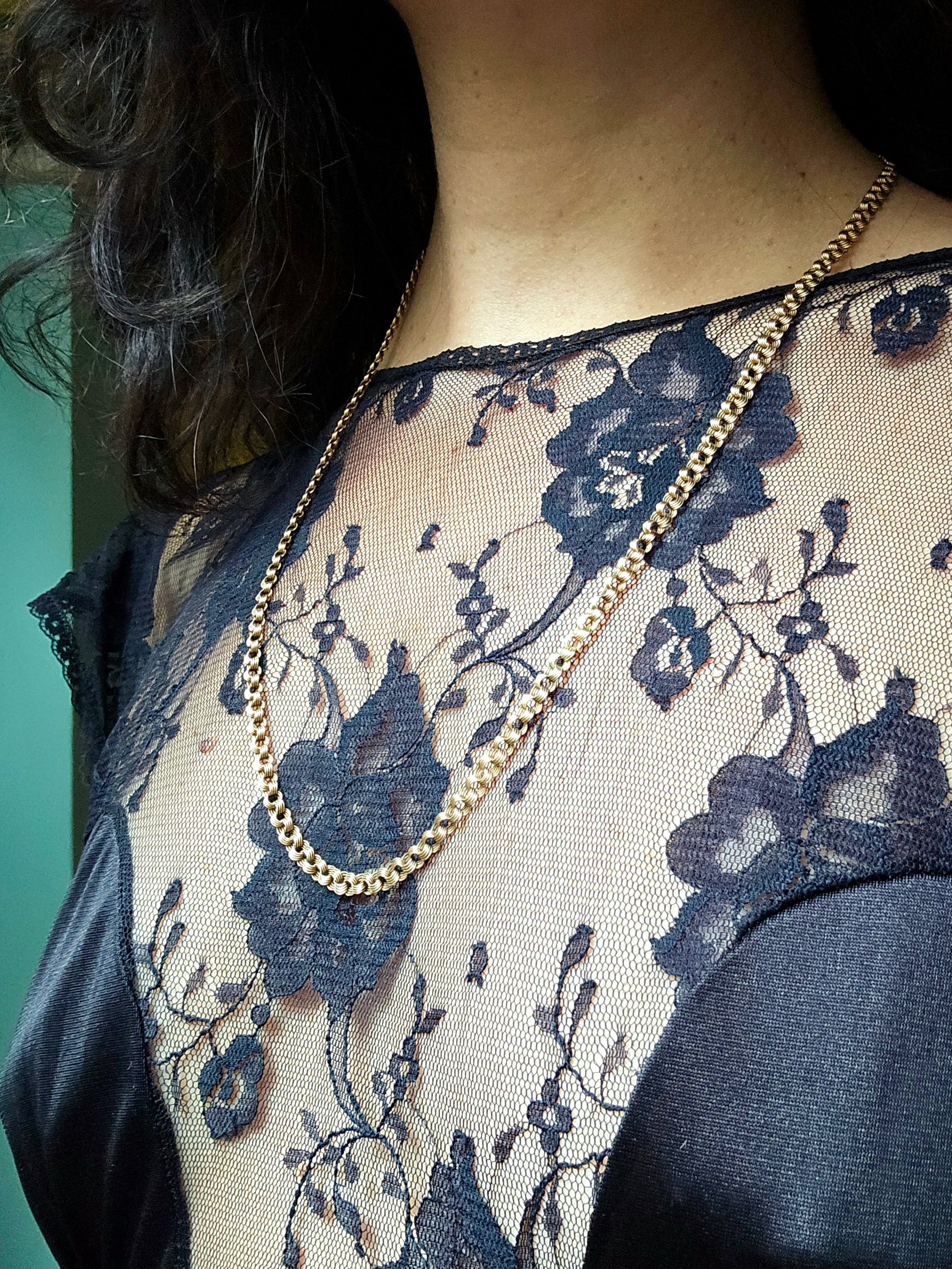 This sleek and elegant flat, multi-link chain is a classic Russian style, seen often throughout the end of the 19th century and into the middle of the 20th. Made of a warm, 14k rose gold, the links lie flat against the skin and simply ooze understated elegance. There is one section of links that have been repaired, but it is barely visible when worn. The spring ring clasp has a tiny purity stamp- 583 (58.3% is the precise purity of 14k, but it's often rounded up to 58.5%/585).