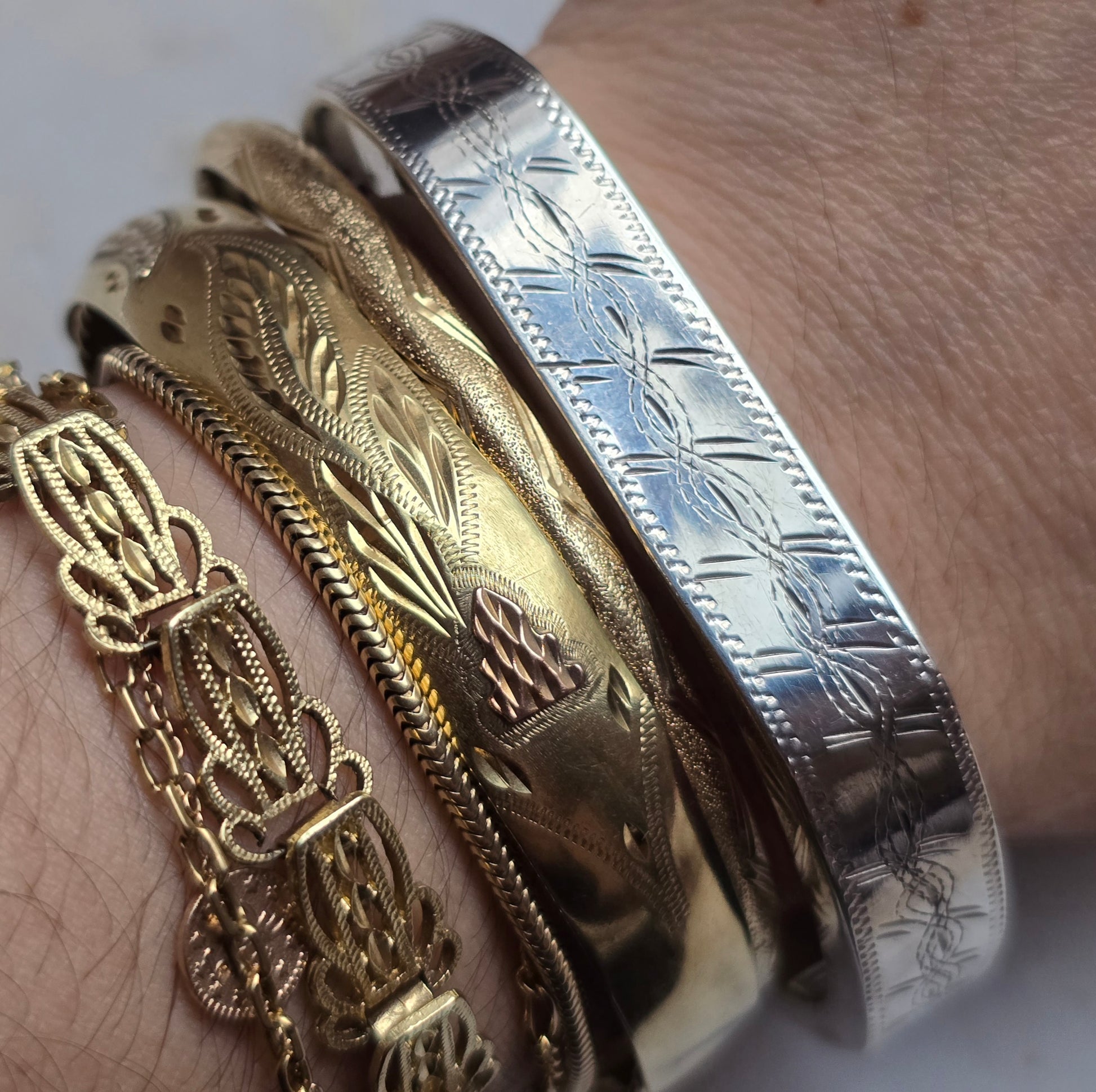 Vintage Victorian Revival Silver Bangle
